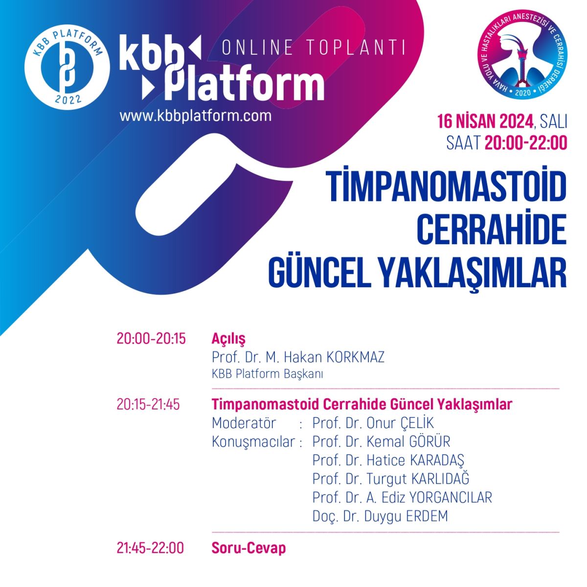 KBB Platform Online Toplantısı "Timpanomastoid Cerrahide Güncel Yaklaşımlar": 16 Nisan 2024