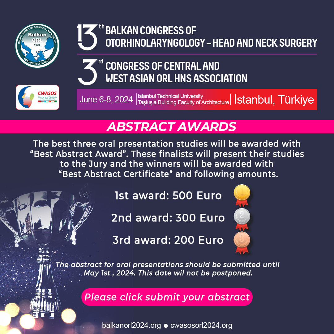 13th Balkan Congress of ORL&HNS and 3rd Congress of Central and West Asian ORL&HNS Association – Abstract Awards