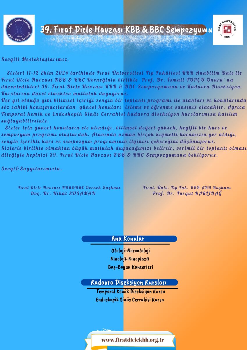 39. Fırat Dicle Havzası KBB & BBC Sempozyumu: 11-12 Ekim 2024 *Güncel*