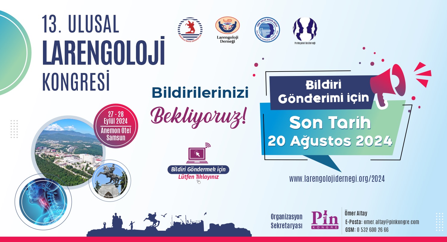 13. Ulusal Larengoloji Kongresi Son Bildiri Gönderim Tarihi: 20 Ağustos 2024