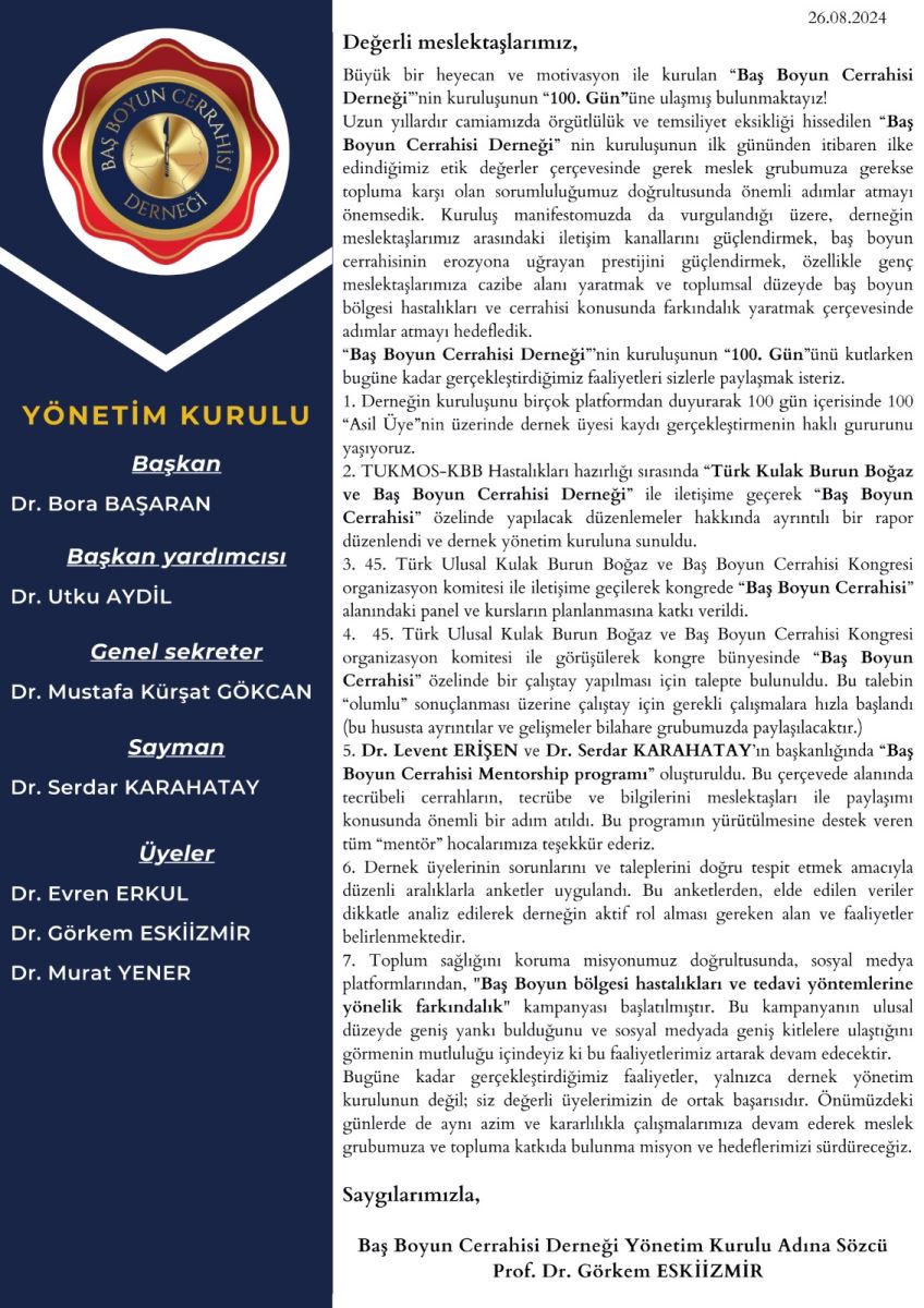Baş Boyun Cerrahisi Derneği 100. Günü !