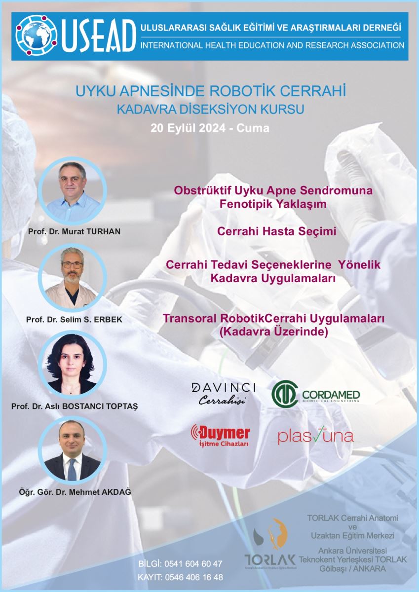 Katılımcıların obstruktif uyku apne sendromu ile ilgili hem teorik bilgi hem de pratik deneyim kazanacağı ve uyku cerrahisinde cerrahi müdahale boyutunda derinlemesine bir anlayış geliştireceklerini ümit ediyoruz.