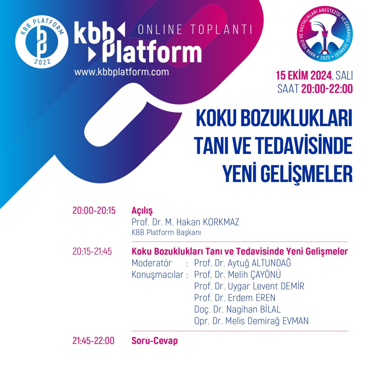KBB Platform Online Toplantısı "Koku Bozuklukları Tanı ve Tedavisinde Yeni Gelişmeler": 15 Ekim 2024