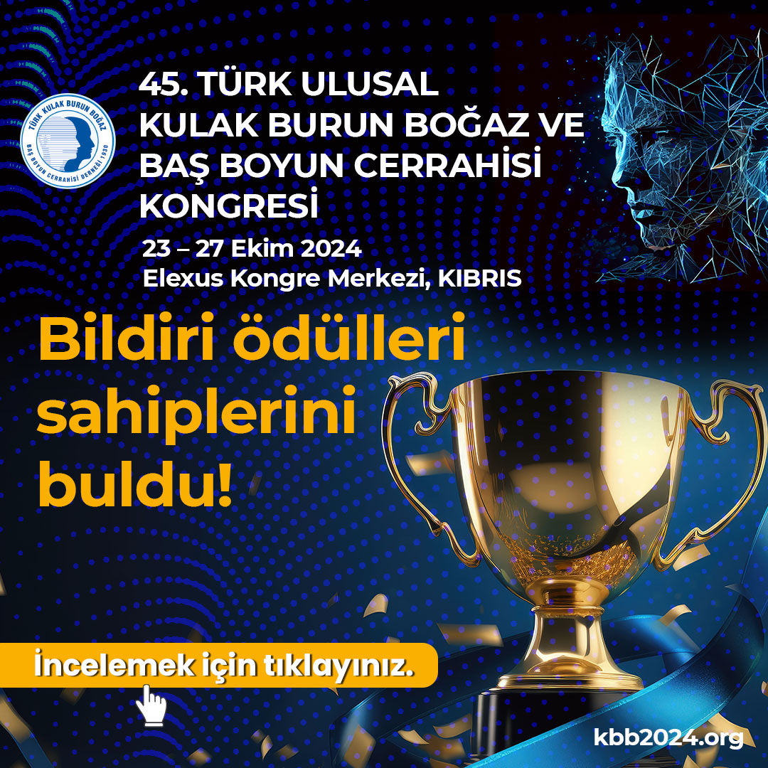 45. Türk Ulusal Kulak Burun Boğaz ve Baş Boyun Cerrahisi Bildiri Ödülleri Sahiplerini Buldu !