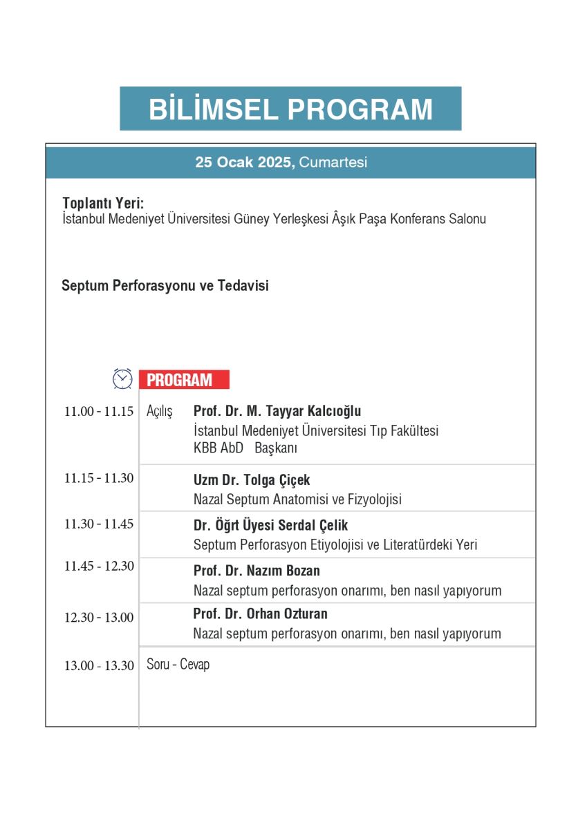 Medeniyet'te KBB - Septum Perforasyonu ve Tedavisi : 25 Ocak 2025