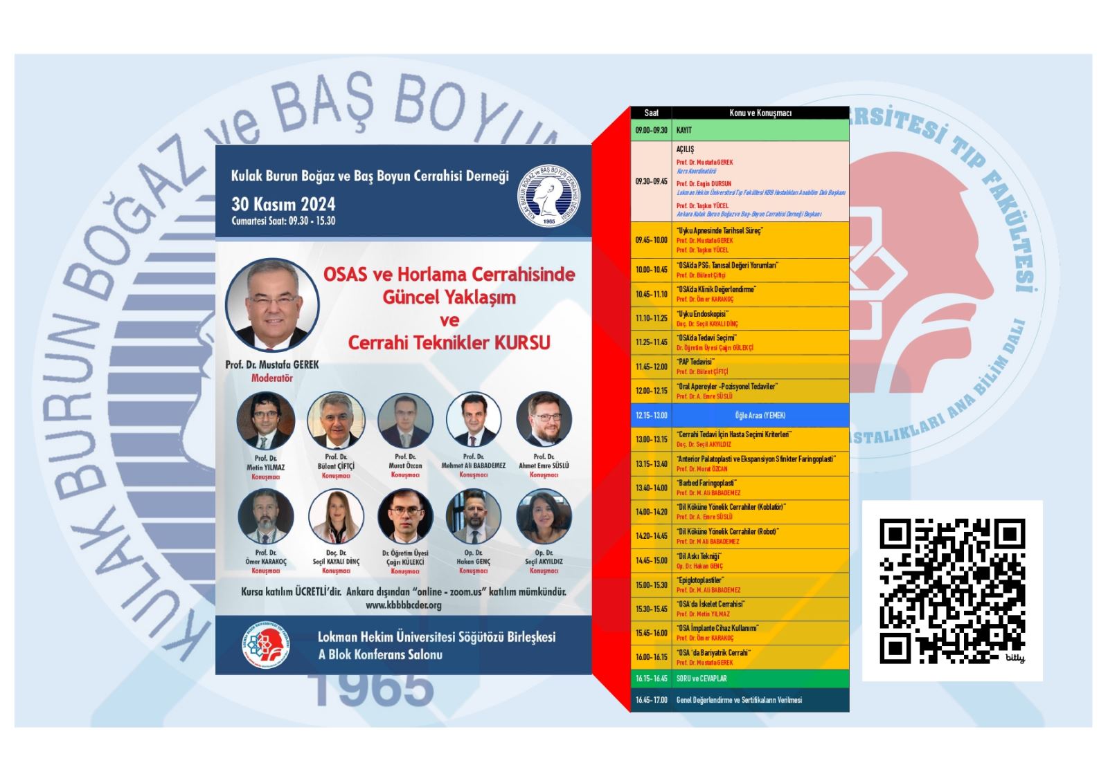 OSAS Ve Horlama Cerrahisinde Güncel Yaklaşım ve Cerrahİ Teknikler Eğitimi Kurs Programı
