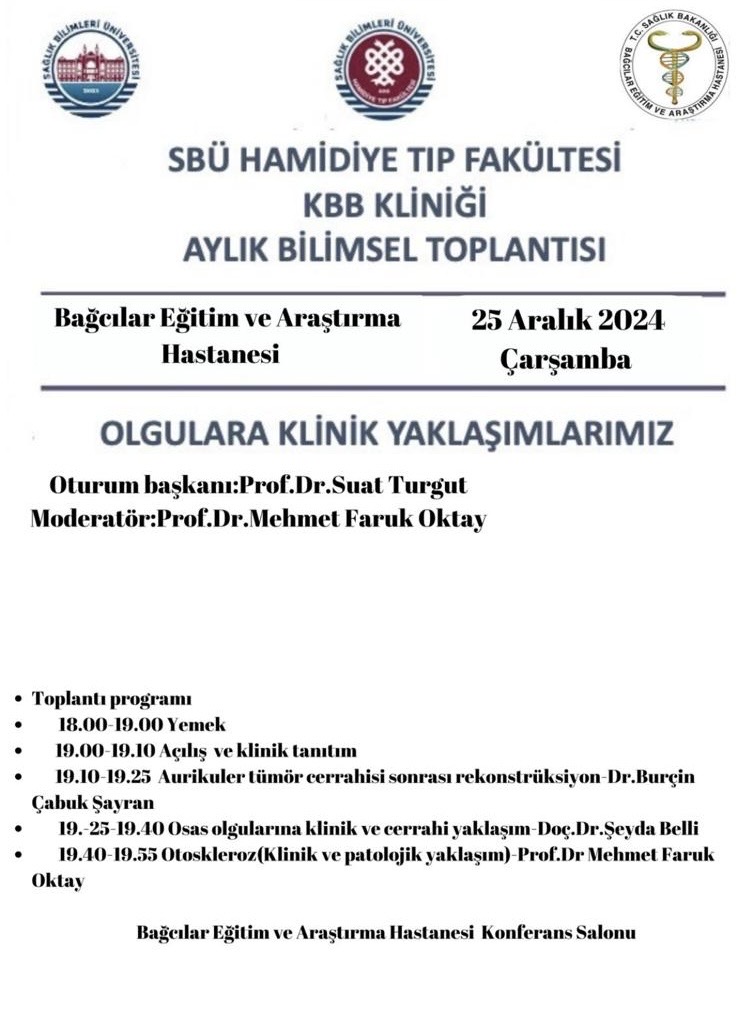 SBÜ Hamidiye Tıp Fakültesi KBB Kliniği Aylık Bilimsel Toplantısı : 25 Aralık 2024