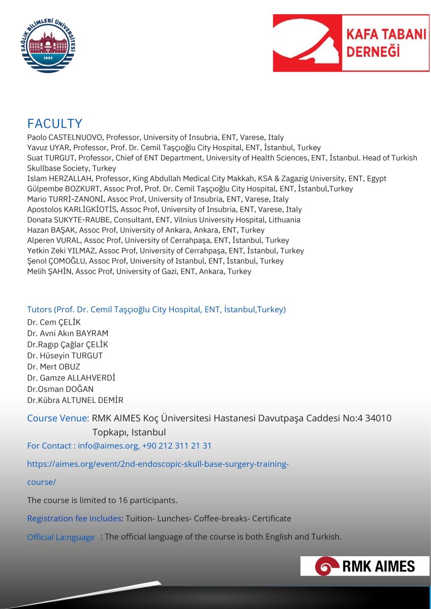 Prof. Dr. Cemil Taşçıoğlu Şehir Hastanesi Kafatabanı Diseksiyon Kursu 5-6 Nisan 2025