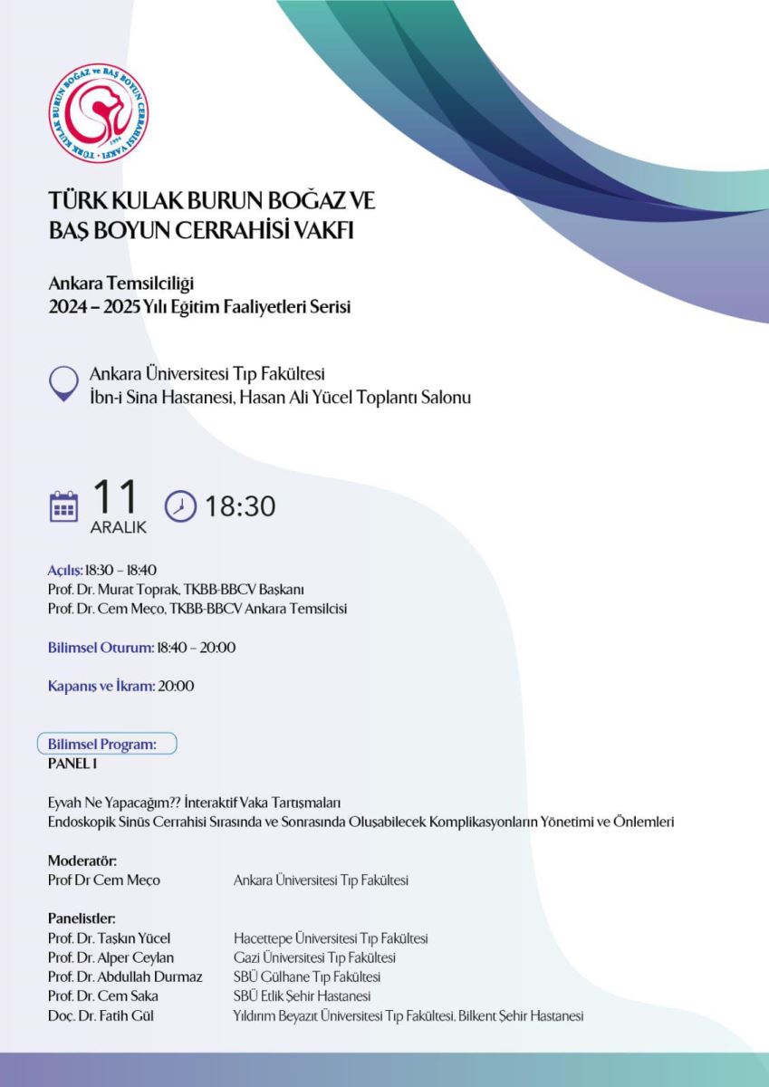 Türk Kulak Burun Boğaz ve Baş Boyun Cerrahisi Vakfı Eğitim Paneli: 11 Aralık 2024