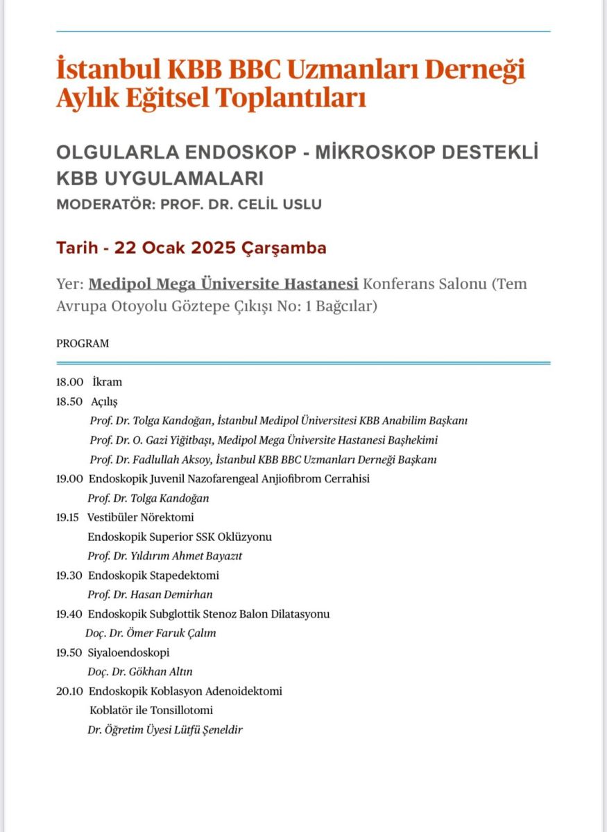 İstanbul KBB BBC Uzmanları Derneği Aylık Eğitsel Toplantıları: 22 Ocak 2024