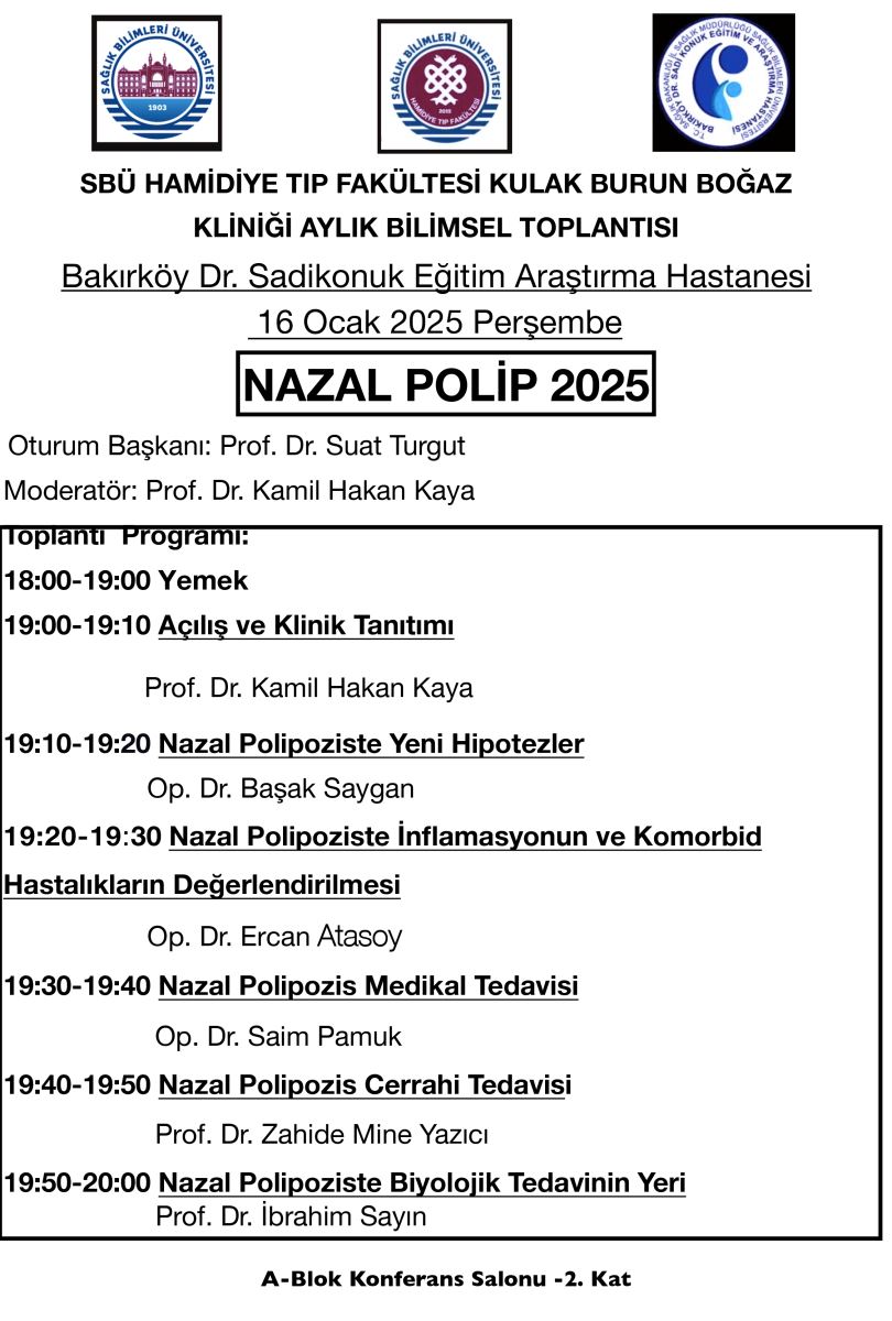 SBÜ Hamidiye Tıp Fakültesi Kulak Burun Boğaz Kliniği Aylık Bilimsel Toplantısı: 16 Ocak 2025
