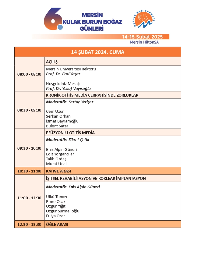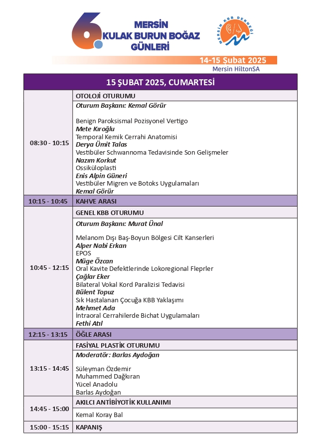 6. Mersin Kulak Burun Boğaz Günleri Bildiri Günleri İçin Son Başvuru Tarihi: 31 Ocak 2025