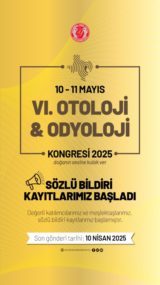 VI. Otoloji & Odyoloji Kongresi Sözlü Bildiri Kayıtarı Başlamıştır