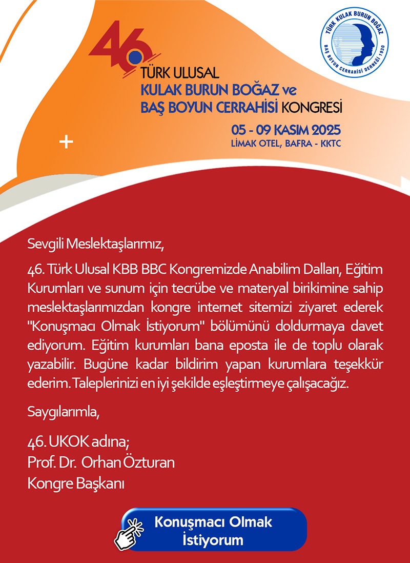 46. Türk Ulusal Kulak Burun Boğaz ve Baş Boyun Cerrahisi Derneği Kongre Başkanımızın Duyurusu