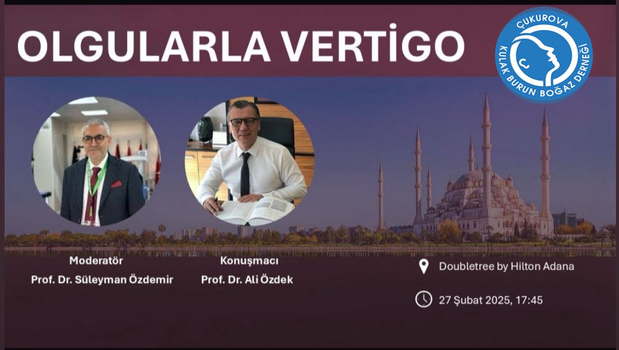 Çukurova KBB Derneği olarak Şubat ayı bilimsel toplantımızda, 27 Şubat 2025 Perşembe günü (bugün) saat 17:30-21:00 saatleri arasında Hilton Double Tree Otel konferans salonunda “Olgularla Vertigo” başlığı ile Prof. Dr. Ali Özdek konuşmacı olarak yer alacaktır. Konuya ilgi duyan meslektaşımızı toplantımıza bekliyorum.