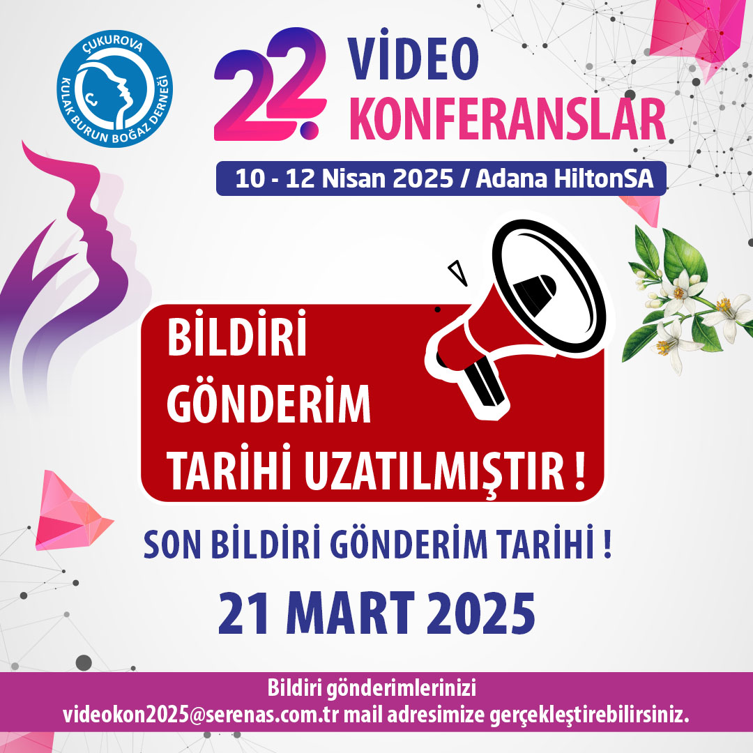 22. Video Konferanslar Bildiri Gönderim Tarihi Uzatılmıştır ! Son Gönderim Tarihi 21 Mart 2025 !