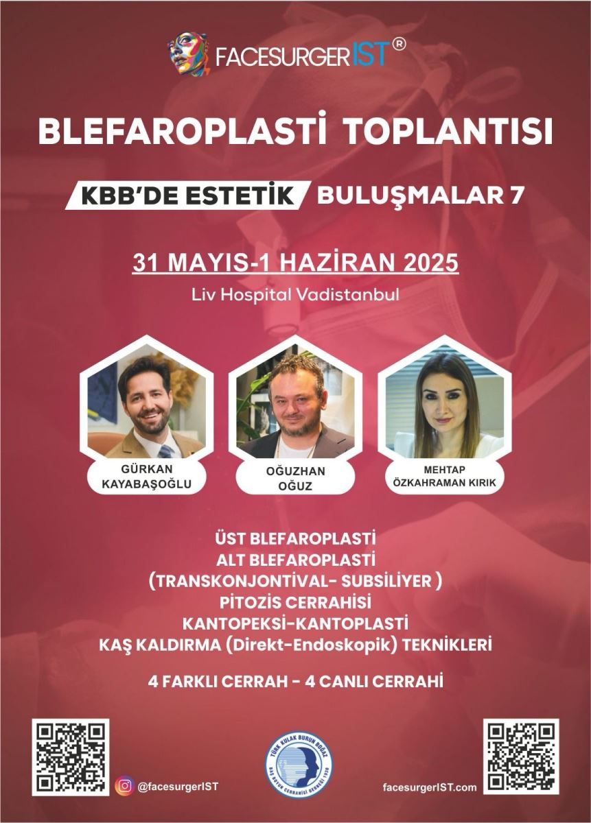 31 Mayıs- 1 Haziran tarihlerinde düzenleyeceğimiz, Göz Estetiği toplantımıza davetlisiniz. CANLI cerrahiler ile merak ettiğiniz tüm detayları öğrenebileceğiniz, çok detaylı konu başlıkları ve titizlikle hazırlanmış görsel dökümanlar sayesinde, süre kısıtlaması olmayan öğretici panel oturumlarıyla GÖZ KAPAĞI ESTETİĞİNDEKİ tüm güncel konuların tartışılacağı "KBB‘de Estetik Buluşmalar 7 " toplantısı için biz çok heyecanlıyız!