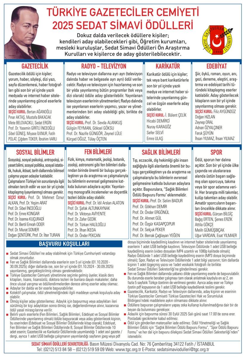 Türkiye Gazeteciler Cemiyeti 2025 Sedat Simavi Ödülleri