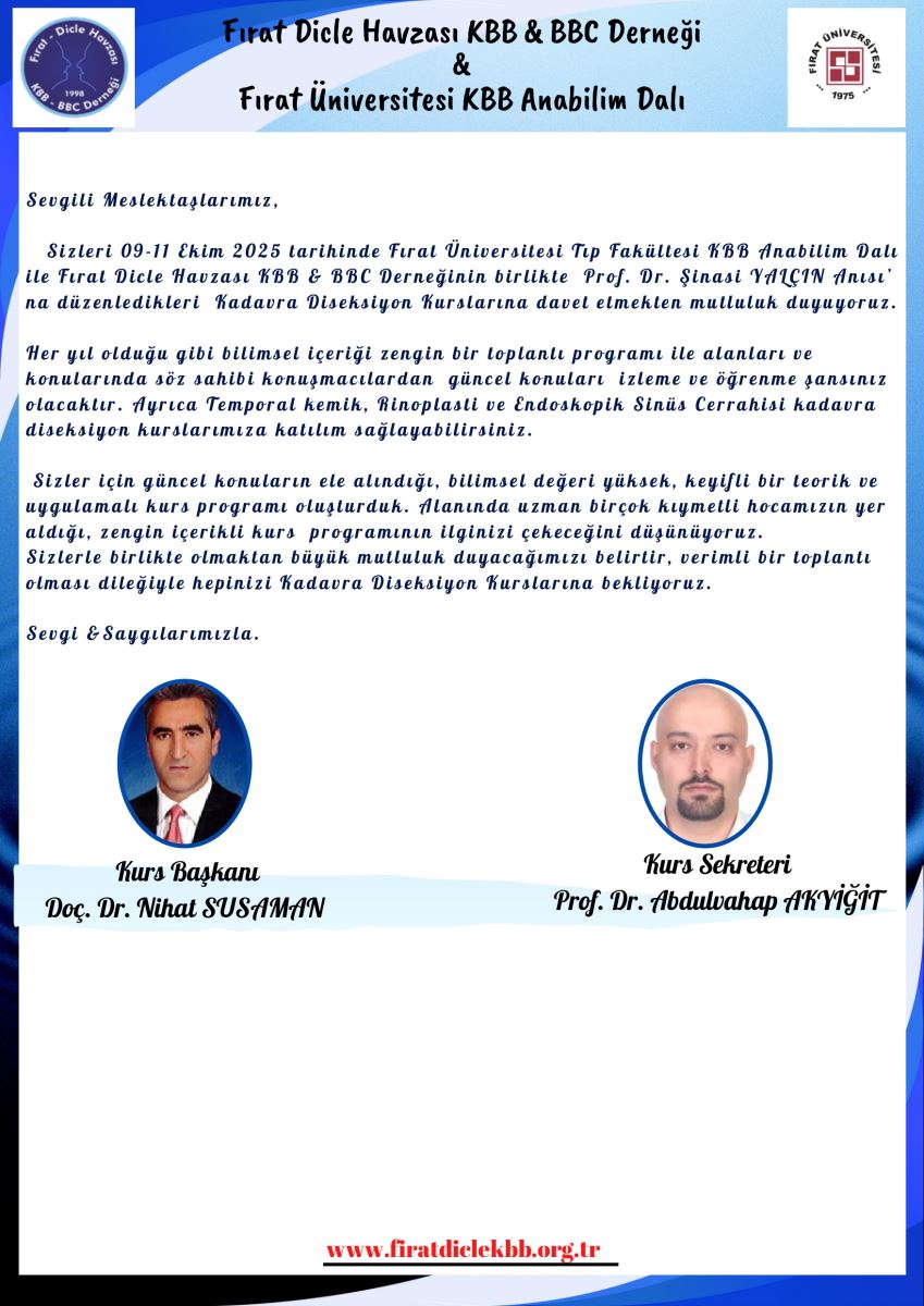 Prof. Dr. Şinasi Yalçın Anısına Kadavra Diseksiyon Kurs Programı