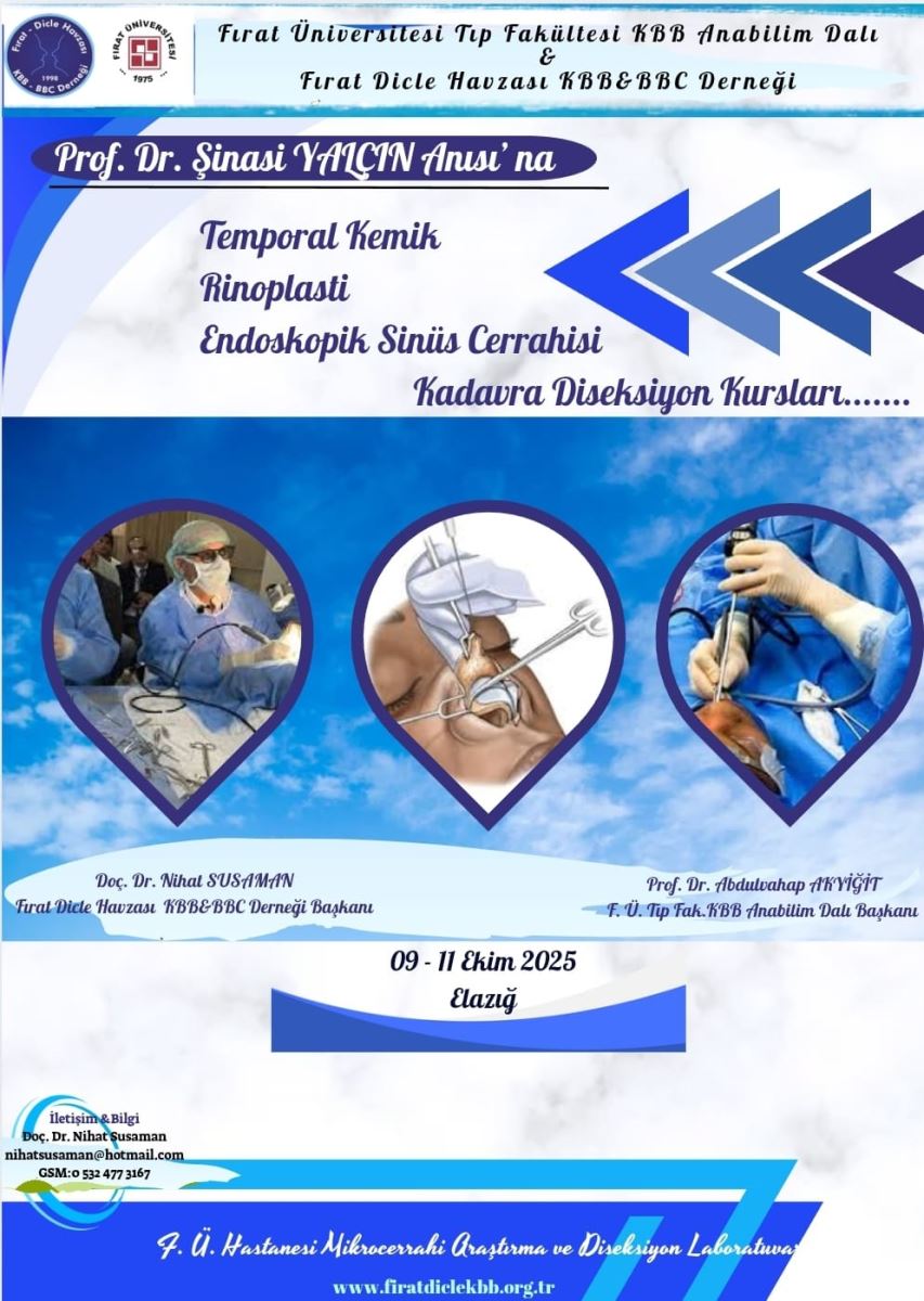 Prof. Dr. Şinasi Yalçın Anısına Temporal Kemik Rinoplasti Endoskopik Sinüs Cerrahisi Kadavra Diseksiyon Kursları : 9-11 Ekim 2025