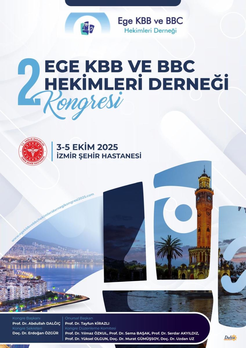3–5 Ekim 2025 tarihleri arasında İzmir Şehir Hastanesinde düzenlenecek olan 2. Ege KBB ve BBC Hekimleri Derneği Kongresi'nin bildiri sistemi açılmıştır. Katılımınızı ve bildirilerinizi bekliyoruz.