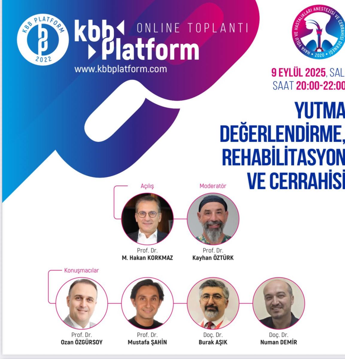 KBB Platform Onlıne Toplantı "Yutma Değerlendirme , Rehabilitasyon ve Cerrahisi" : 9 Eylül 2025