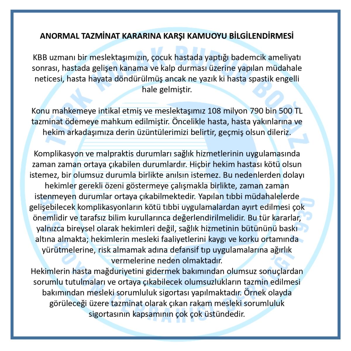 ANORMAL TAZMİNAT KARARINA KARŞI KAMUOYU BİLGİLENDİRMESİ