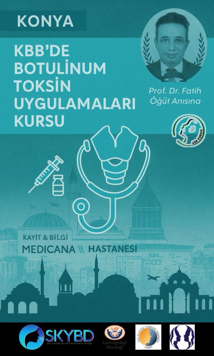 Larengoloji ve Foniyatriye buyuk katkilari olan Prof Dr Fatih Öğüt anisina 21-22 Kasım 2025 tarihinde Konya Medicana Hastanesi toplantı salonunda ‘Kbb’ de botulinim toksin uygulamalari kursu’ düzenleyeceğiz. Konya kbb uzmanları derneği, Ses yutma ve konusma bozuklukları dernegi, Yüz plastik cerrahi derneği, Profesyonel ses derneği ve Laringoloji derneklerinin katkolari ile gerceklesecek olan kursumuza sizlere ev sahipligi yapmaktan buyuk mutluluk duyarim. Her yonu ile sadece botulinim toksin uygulamasi konusacagiz. Cumartesi uygulamamiz olacak. Tum dernekler ve duzenleme komitesi adina
