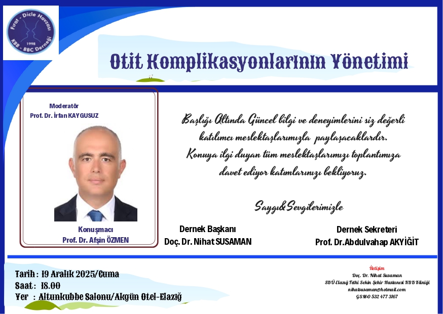 Fırat Dicle Havzası KBB BBC Derneği " Otit Komplikasyonlarının Yönetimi" : 19 Aralık 2025