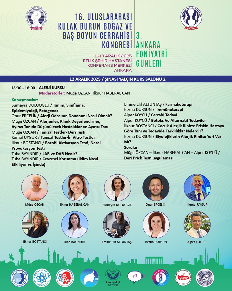 Sizleri, 11-13 Aralık 2025 tarihleri arasında Ankara’da gerçekleştireceğimiz “Ankara Foniyatri Günleri & 16. Uluslararası KBB-Baş Boyun Cerrahisi Kongresi”ne davet etmekten büyük onur duyuyoruz.