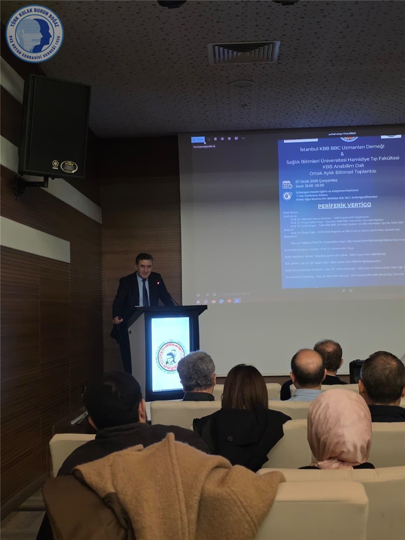 İstanbul KBB-BBC Uzmanları Derneği ve Sağlık Bilimleri Üniversitesi Hamidiye Tıp Fakültesi KBB Anabilim Dalının “Periferik Vertigo” konulu aylık bilimsel ortak toplantısı 07.01.2026 tarihinde SBÜ Haseki Eğitim ve Araştırma Hastanesi KBB Kliniği ev sahipliğinde yüksek bir katılımla gerçekleştirildi.