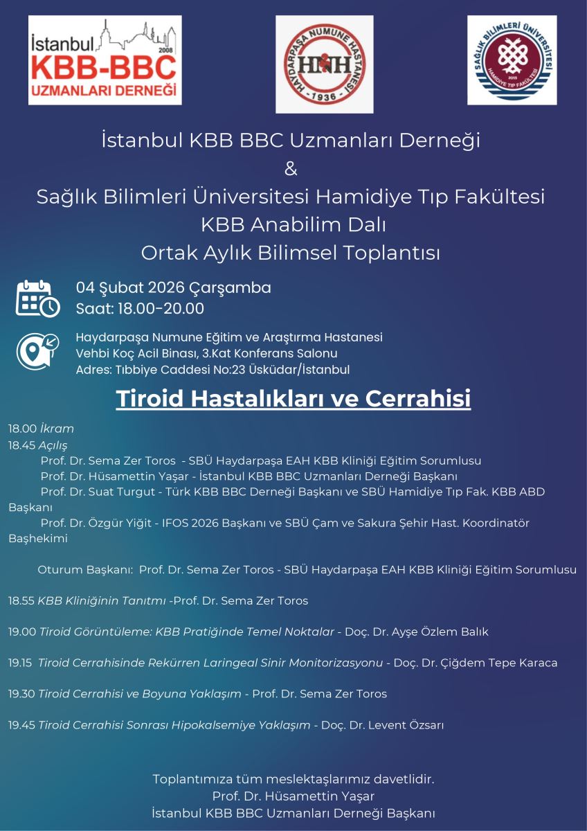 İstanbul KBB BBC Uzmanları Derneği & SBÜ Hamidiye Tıp Fakültesi KBB Anabilim Dalı Ortak Aylık Bilimsel Toplantısı: 4 Şubat 2026