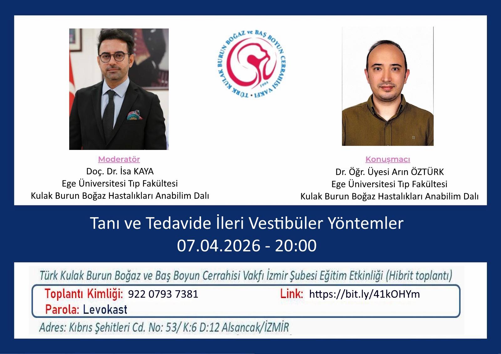 Türk Kulak Burun Boğaz ve Baş Boyun Cerrahisi Vakfı "Tanı ve Tedavide İleri Vestibüler Yöntemler" : 7 Nisan 2026