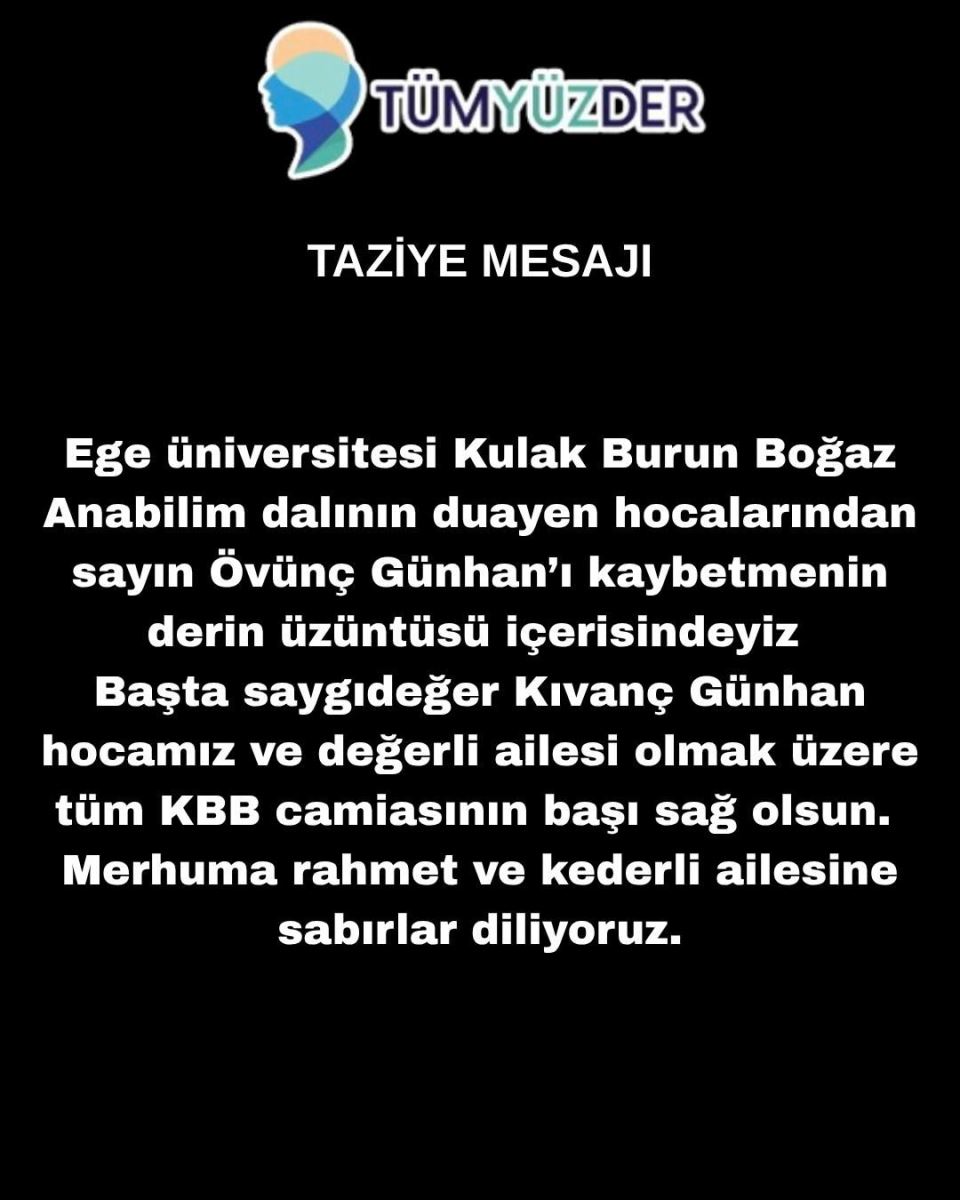Saygıdeğer Prof. Dr. Övünç Günhan hocamıza Allah’tan rahmet, ailesine ve tüm camiamıza baş sağlığı dileriz.