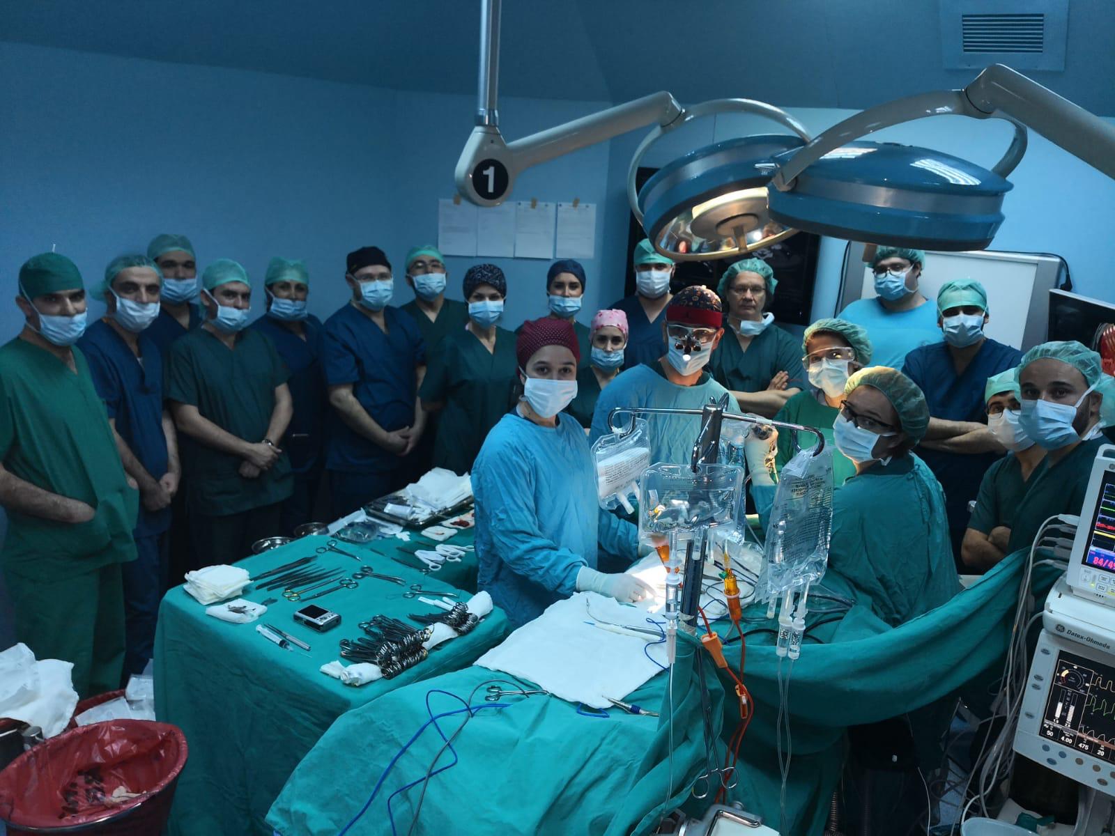 Ankara Üniversitesi ameliyathanesinde öğrenciler Prof.Dr Babür Küçük, Prof Dr Kürşat Gökcan, Op.Dr Zahide Ciler Büyükatalay ve ekibi tarafından gerçekleştirilen bil.total tiroidektomi+santral boyun diseksyonu, bilateral selektif boyun diseksiyonu+suprakrikoid larenjektomi, bil. Total Tiroidektomi, servikal Pl. Kökenli Schwannom eksizyonu ameliyatlarını ilgiyle izlediler.