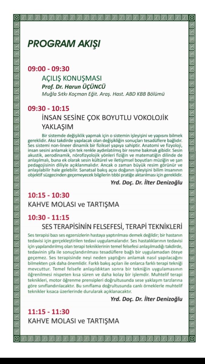 Muğla Sıtkı Koçman üniversitesi Eğitim Araştırma Hastanesinde 23 Şubat cumartesi günü Klinik vokoloji ve Ses terapisi teknikleri sempozyumu yapılacaktır.