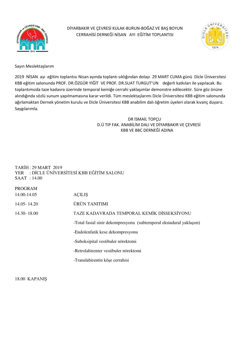 Diyarbakır ve Çevresi KBB-BBC Derneği Nisan Ayı Eğitim Toplantısı