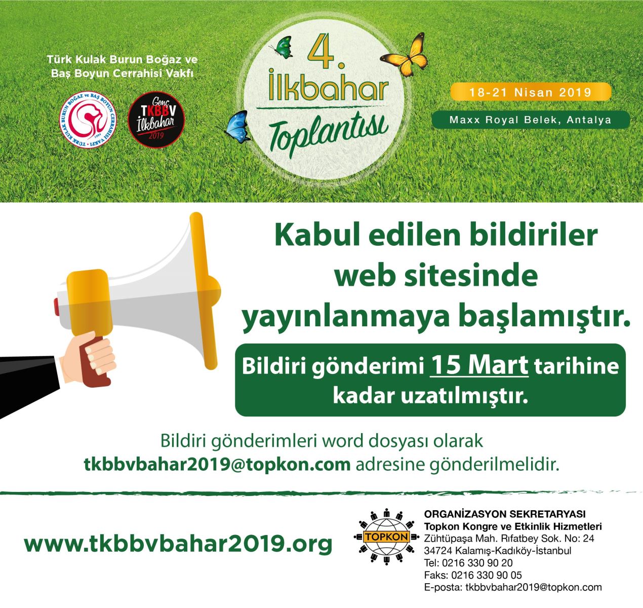 TKBBV 4. İlkbahar Toplantısı Bildiri Gönderim Tarihi Uzatılmıştır