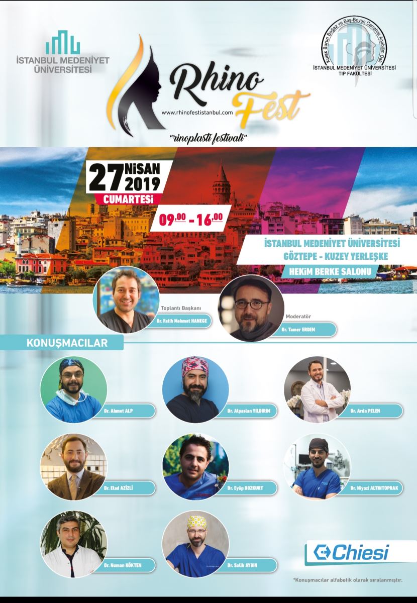 27 nisan 2019 tarihinde, İstanbul Medeniyet Üniversitesi Tıp Fakültesinde, rinoplasti festivali sloganiyla “Rhinofest” toplantisi yapilacaktir. Dr. Fatih Mehmet Hanege Toplantı başkanı, Prof. Dr. Tamer Erdem ise toplantı moderatörü olarak görev alacaktır.