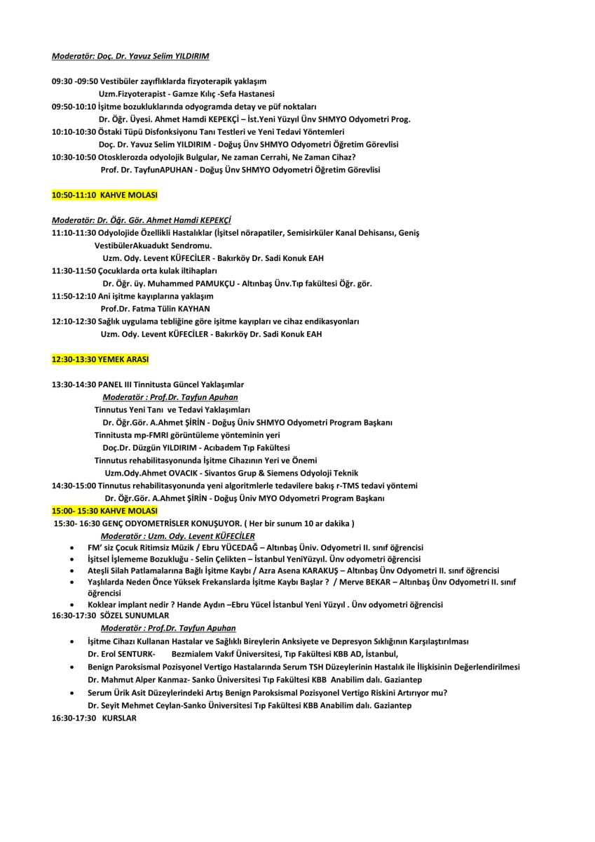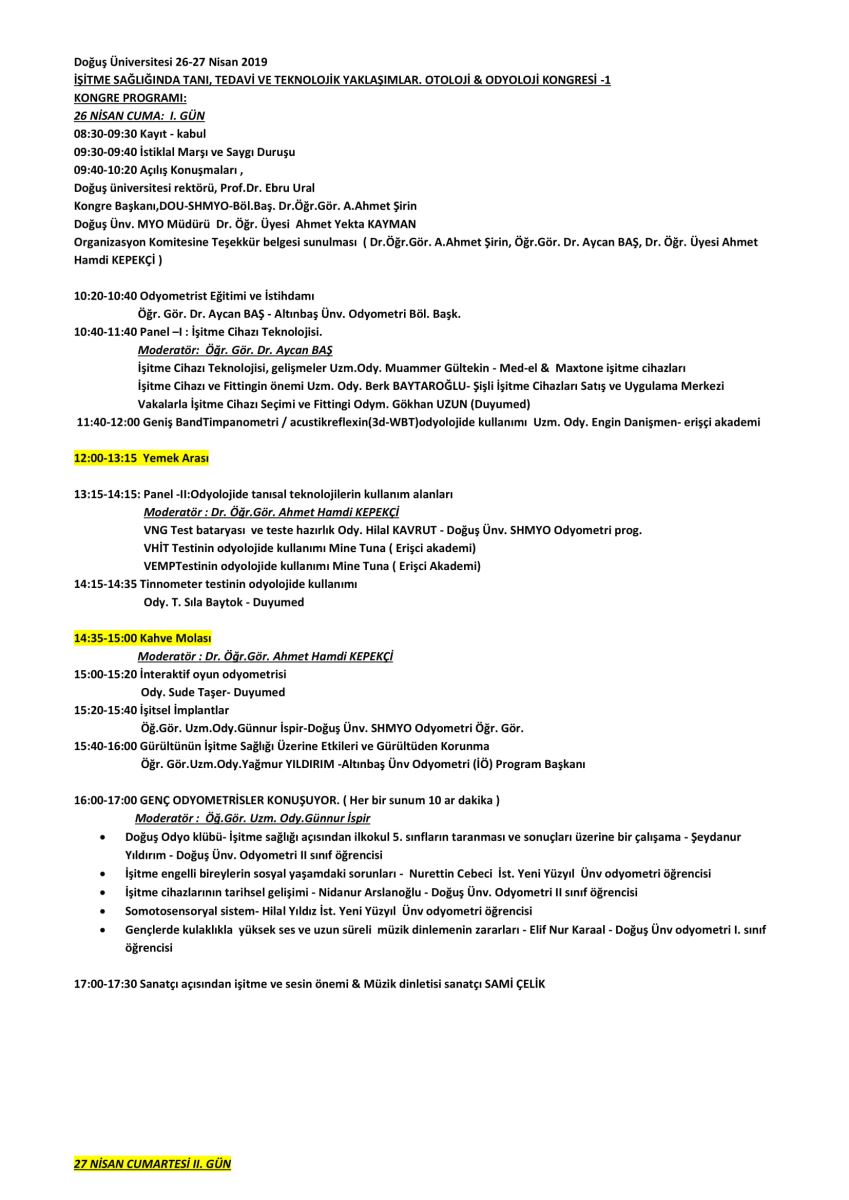 1. Otoloji ve Odyoloji Kongresi Bilimsel Programı Yayında