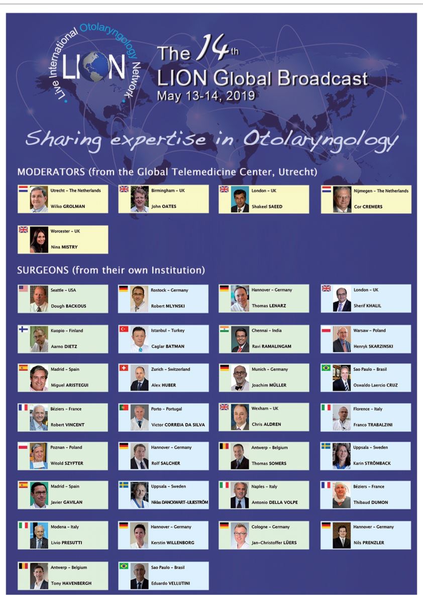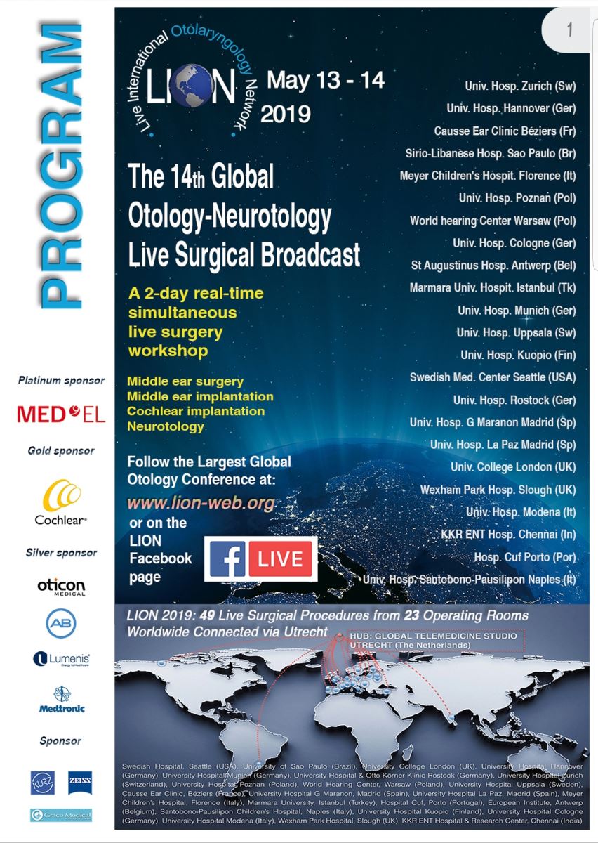 Dünyadan 23 Kulak Burun Boğaz kliniğinin davet edildiği ve tüm dünyadan izlenecek olan LİON canlı cerrahi toplantısına ülkemizden Marmara Üniversitesi Tıp Fakültesi KBB Anabilim Dalı başkanı Prof. Dr. Çağlar Batman, 'Bilateral Koklear İmplant' vakası ile katılacaktır. 13.05.2019 Pazartesi günü gerçekleşecek canlı cerrahiye online olarak www.lion-web.org sitesinden ulaşabilirsiniz.