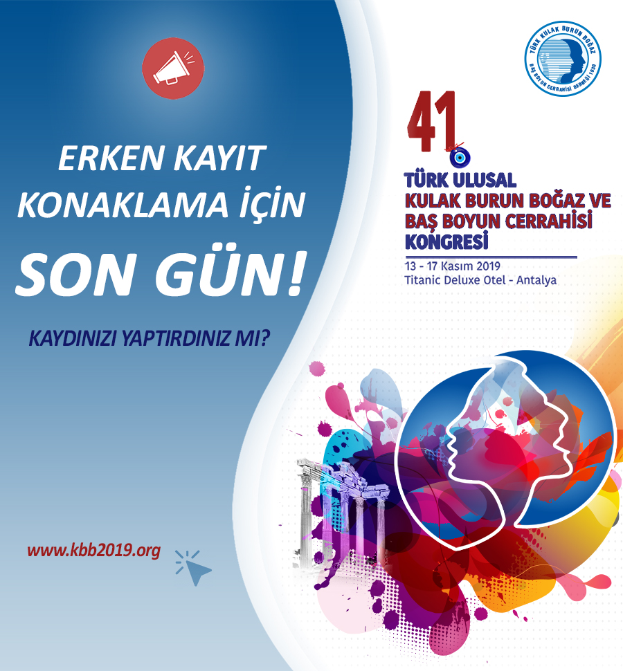 41. Ulusal Türk Kulak Burun Boğaz ve Baş Boyun Cerrahisi Kongresi Erken Kayıt Konaklama için Son Gün