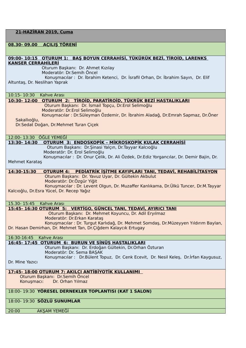 Malatya Kulak Burun Boğaz Derneği ve İnönü Üniversitesi Tıp Fakültesi Kulak Burun Boğaz Hastalıkları Anabilim Dalı tarafından 21- 22 Haziran 2019 tarihleri arasında Malatya’da düzenlenecek olan “III. Olgularla KBB Kongresi’nin bilimsel programı açıklandı.