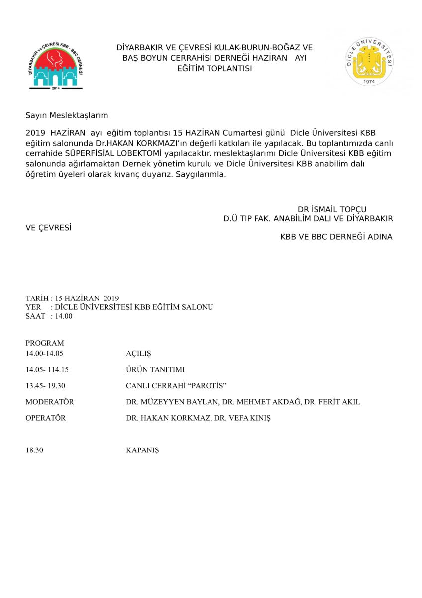 Diyarbakır ve Çevresi KBB-BBC Derneği Haziran Ayı Eğitim Toplantısı