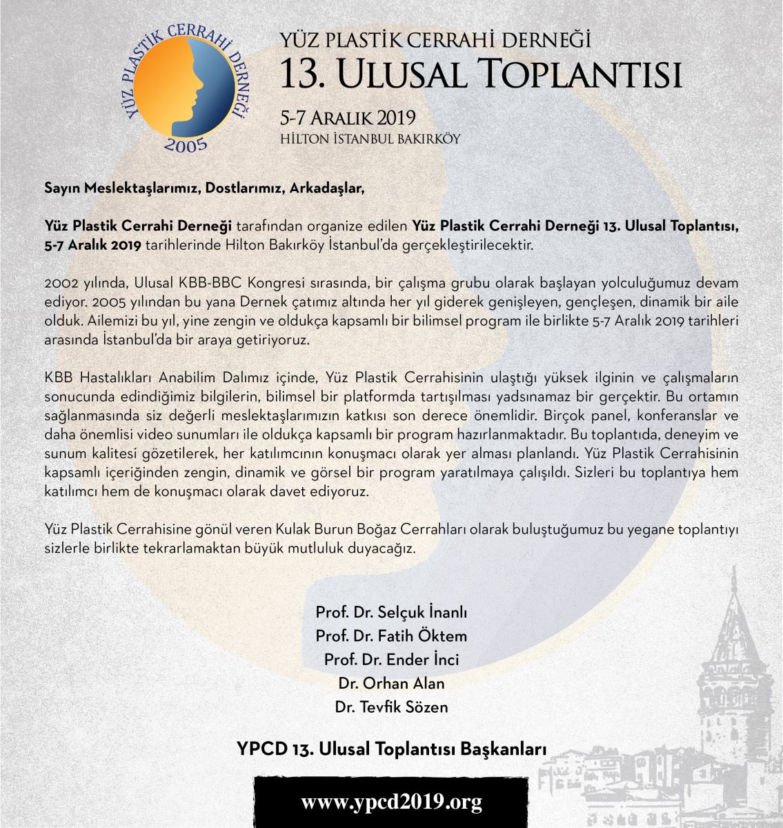 Yüz Plastik Cerrahi Derneği 13. Ulusal Toplantısı 5–7 Aralık 2019