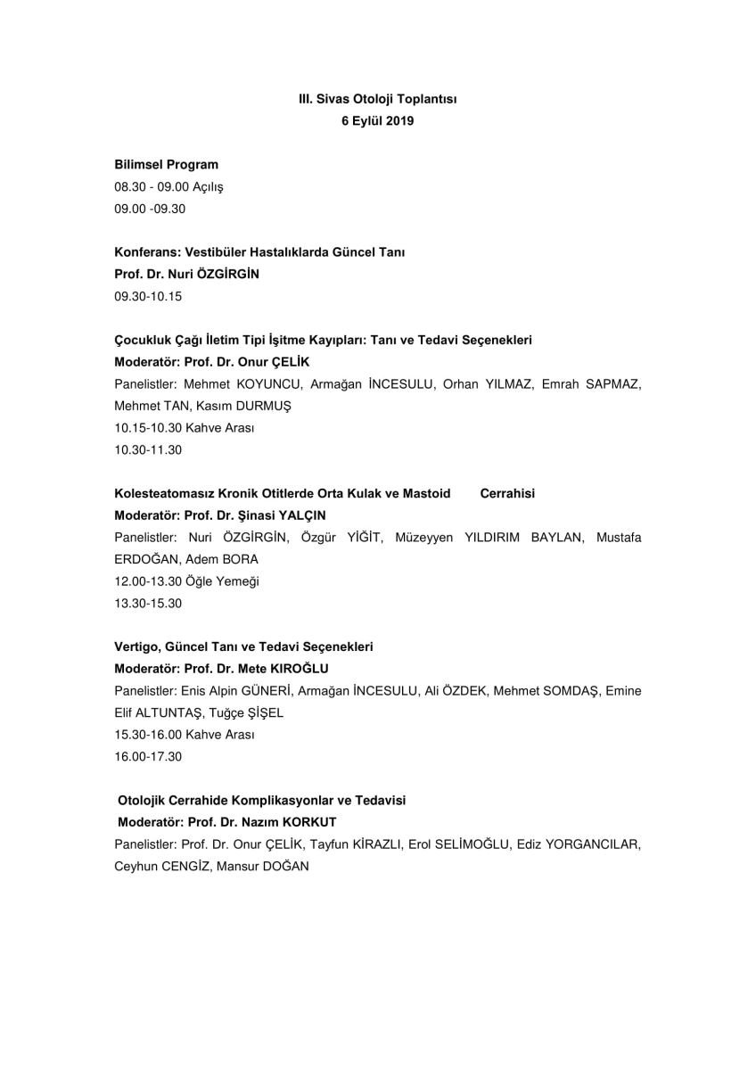 Sivas Cumhuriyet Üniversitesi Tıp Fakültesi Kulak Burun Boğaz Hastalıkları Anabilim Dalı’nın ev sahipliğinde 6 Eylül 2019 tarihinde Sivas’da düzenlenecek olan ‘III. Sivas Otoloji Toplantı’’sında sizlerle birlikte olmanın heyecanı içerisindeyiz.