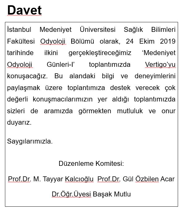 Medeniyet Odyoloji Günleri - 1 " Vertigo "