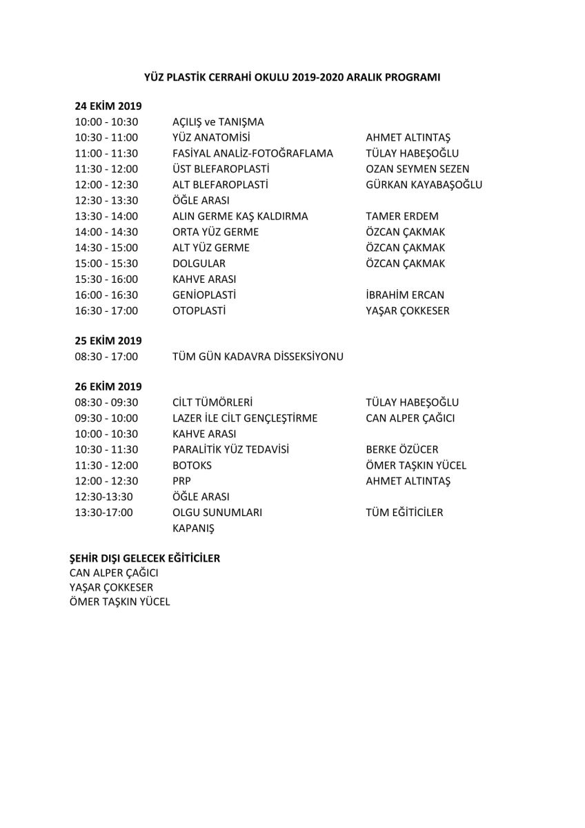 Yüz Plastik Cerrahi Okulu Eğitim Programı