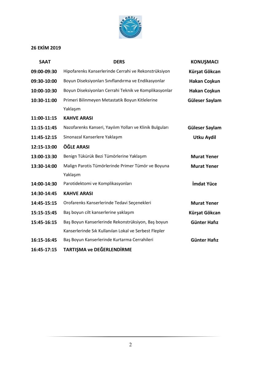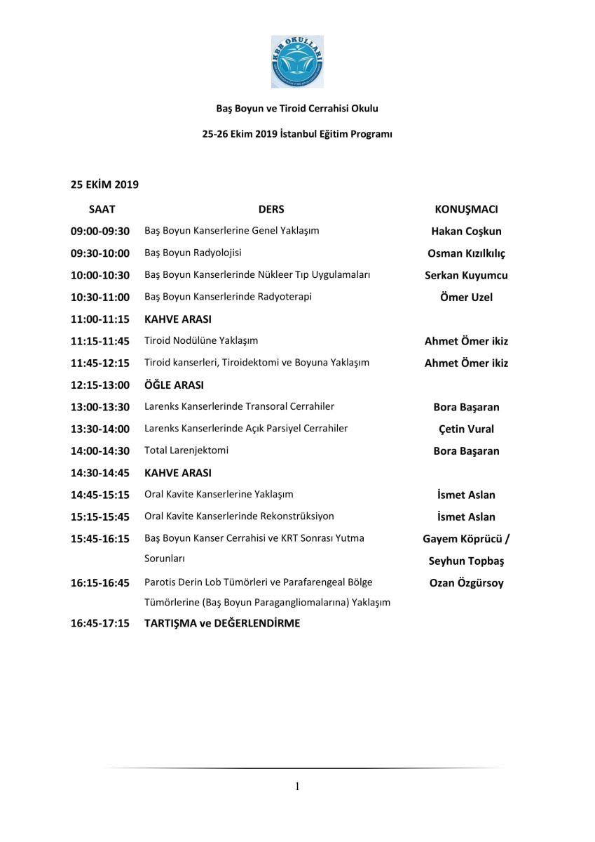 Baş Boyun ve Tiroid Cerrahisi Okulu Eğitim Programı