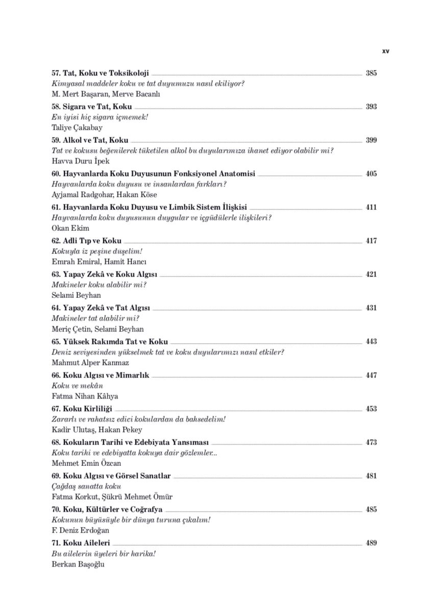 Koku ve Tat Algısı kitabı, genişletilmiş ikinci baskısı basıldı! Koku ve Tat duyuları ile ilişkilendirilebilecek pek çok bilim dalını bir araya getiren eser, 73 bölüm ve 528 sayfadan oluşmaktadır. 108 değerli akademisyenin yazar olarak katkı vermesi ile oluşturulan kitap, ilk olarak 9-10 Kasım tarihlerinde 2. Ankara Koku ve Tat Bilimleri Sempozyumu stand alanında bulunabilir.